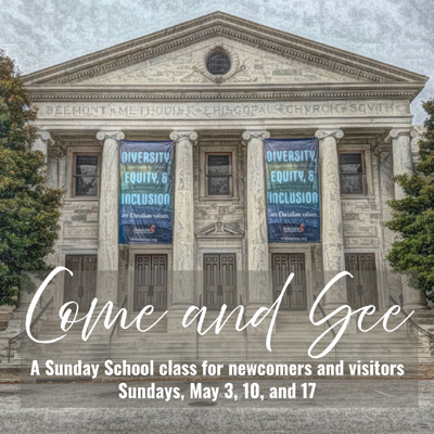 Join us for Come and See, a special Sunday school class for visitors and newcomers! Gather with Heather Harriss, Hunter Wade, and other Belmonters to learn more about Belmont UMC, United Methodism, and what it looks like to live out your faith.