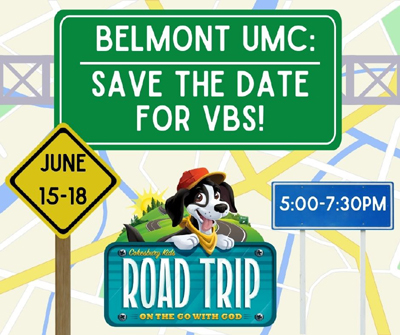 Calling all 3-year-olds through rising 5th graders! Belmont’s talented teachers, pastors, and youth volunteers are gearing up for a VBS “Road Trip.” Now is the time to invite your friends to join you on this journey with God, Monday, June 15–Thursday, June 18, from 5:00–7:30pm each evening — dinner included for campers.